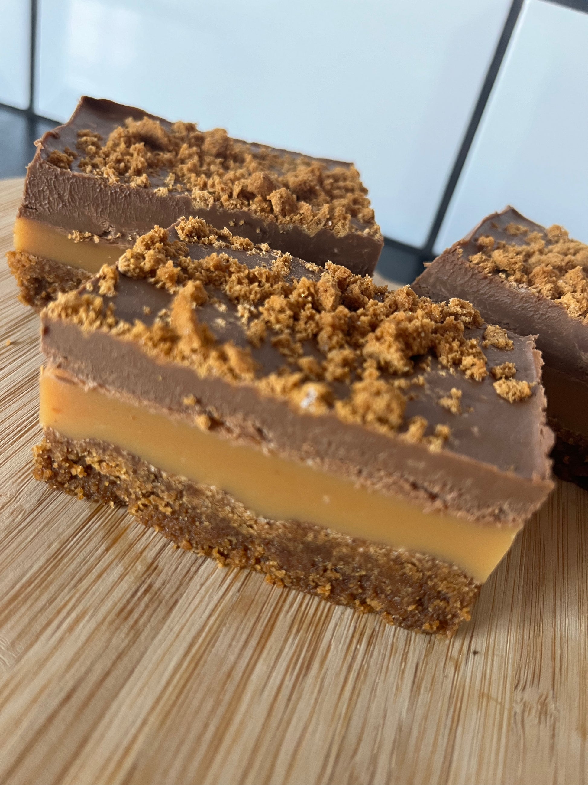 Indulge in decadence with our Biscoff Millionaires Slices. Made with a buttery Biscoff base and a rich caramel layer, topped with a milk chocolate and Biscoff topping. A perfect balance of flavors with a touch of crunch, all in one bite. Satisfy your cravings with 6 delicious slices.